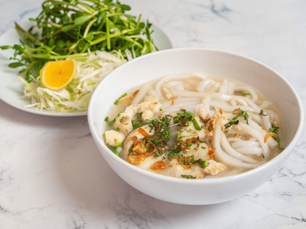 This soup features thick, chewy tapioca or rice noodles in a hearty, rich broth. It’s commonly served with shrimp, pork, or even crab. The texture of the noodles is what sets Banh Canh apart, offering a completely different mouthfeel compared to the silky pho noodles.