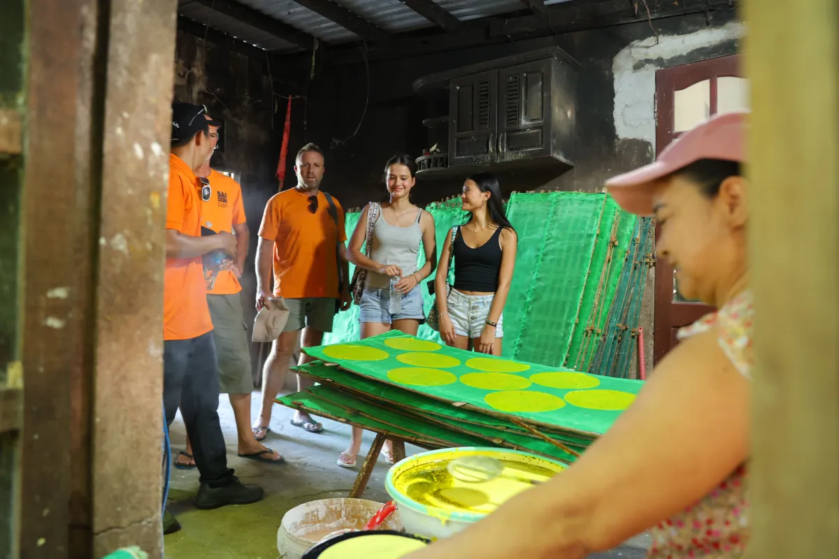 Step inside a multi-generational family home for an intimate look at traditional rice paper craft. Go behind the scenes and try your hand at shaping this essential Vietnamese staple.