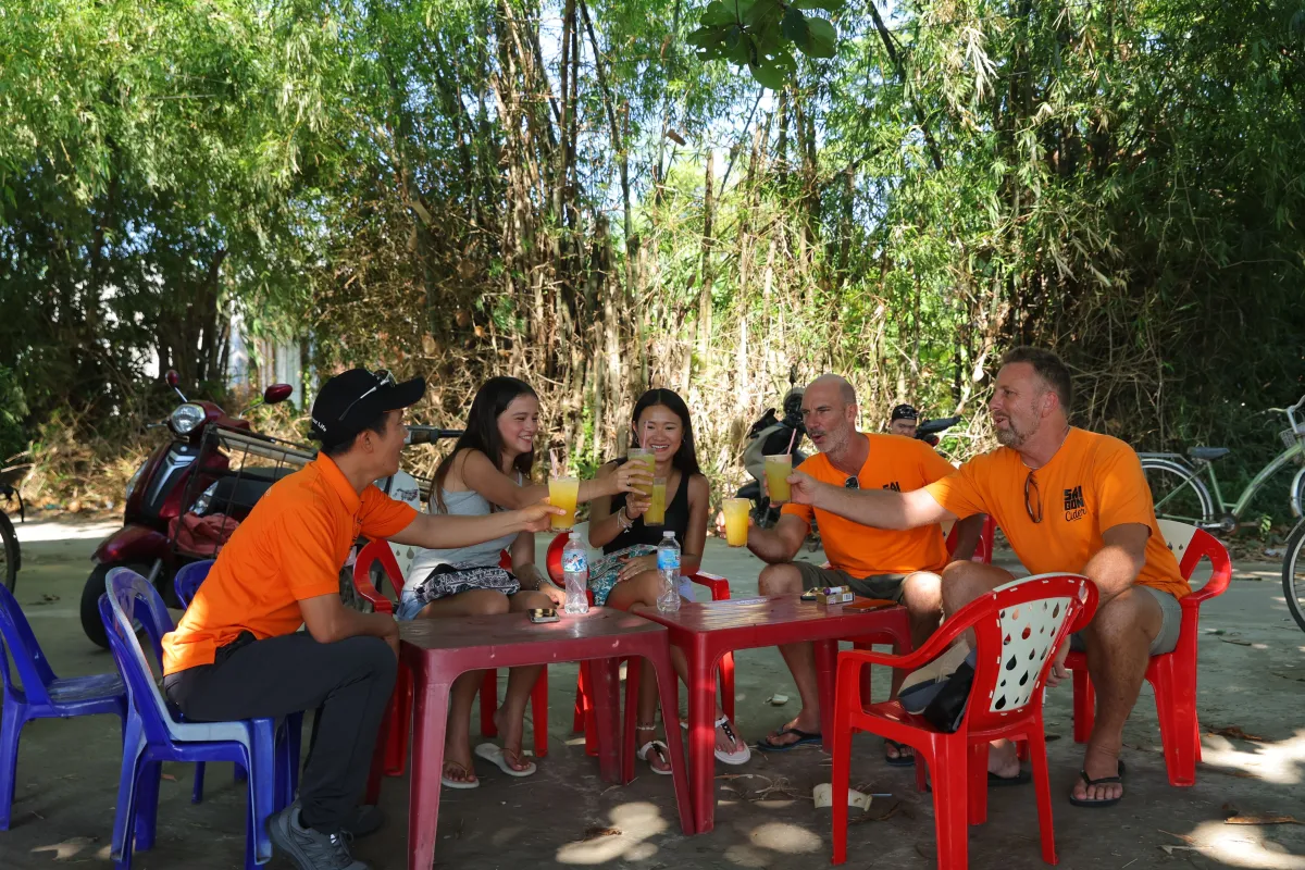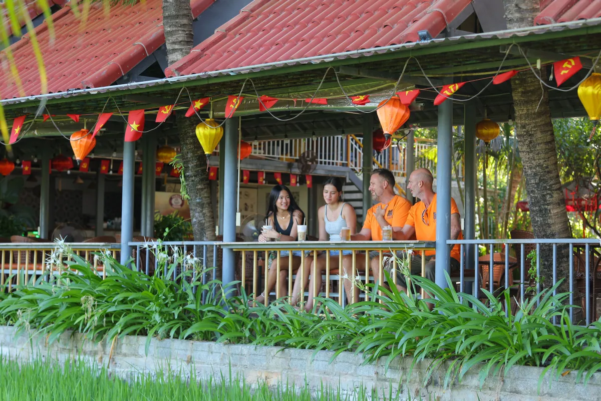 Wind down at a charming countryside café overlooking emerald rice fields. Sip Vietnamese coffee or a cold drink while soaking up the last of the stunning rural vistas before your return.