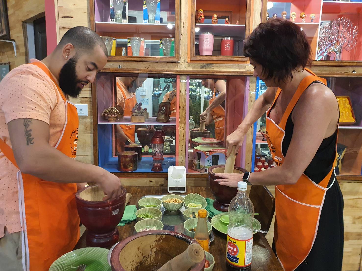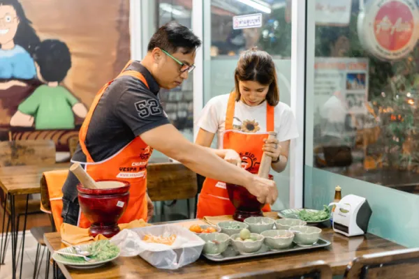 Settle in with a welcome drink and mingle with the locals, then embrace the evening's spirit by mastering the art of making fresh som tum at a cozy local venue.