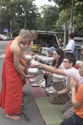 • Sacred Alms Giving: Take part in the ancient Buddhist ritual of monks receiving morning offerings alongside local residents.