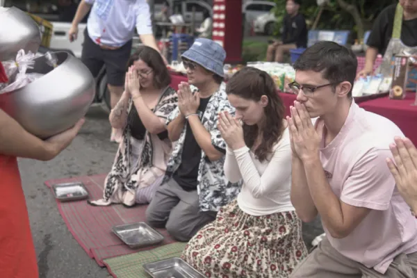 Please dress respectfully. Shoulders and knees must be covered (no tank tops or short shorts) to participate in the alms-giving and to enter Wat Pha Lat.