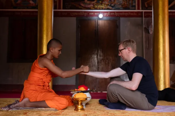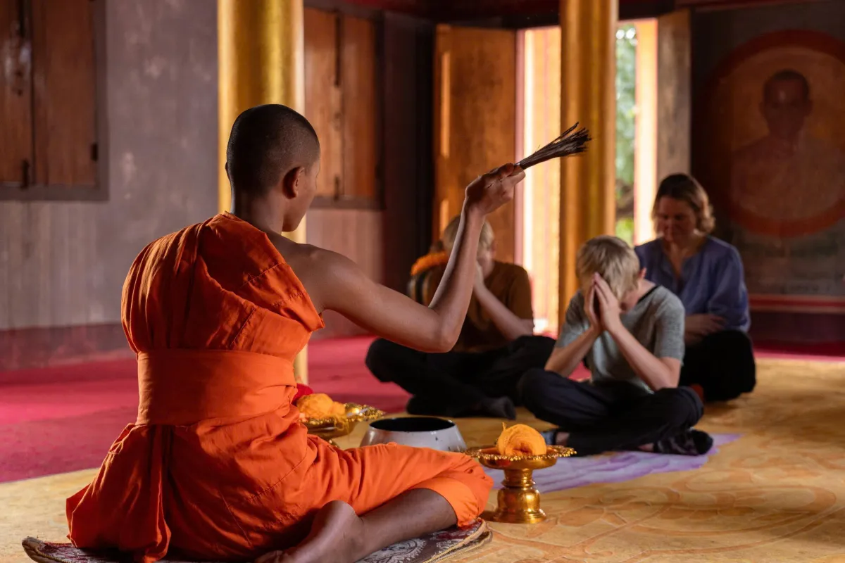 Next, we swap historical insight for local spirituality. Your Vespa whisks you deep into the peaceful countryside to a traditional Buddhist Pagoda. In this serene setting, you will receive a special Buddhist blessing, fostering a true connection with the timeless spiritual traditions of the Khmer people.