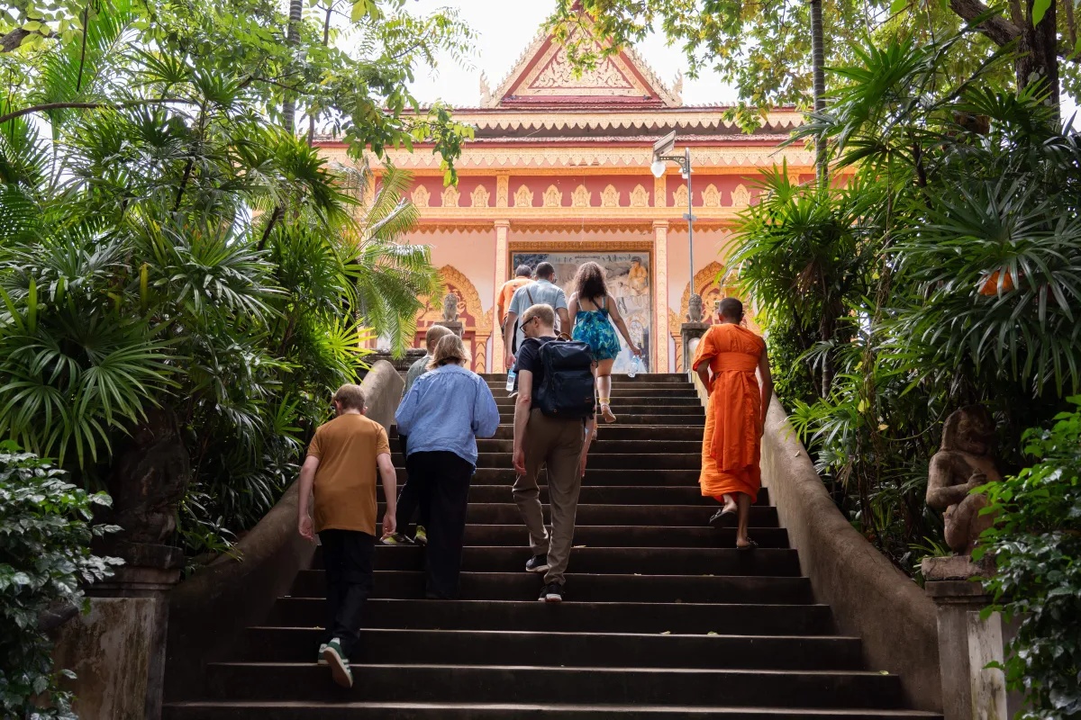 Experience a traditional Buddhist blessing at a local pagoda, gaining insight into Khmer spirituality and receiving wishes of peace and good fortune from resident monks.