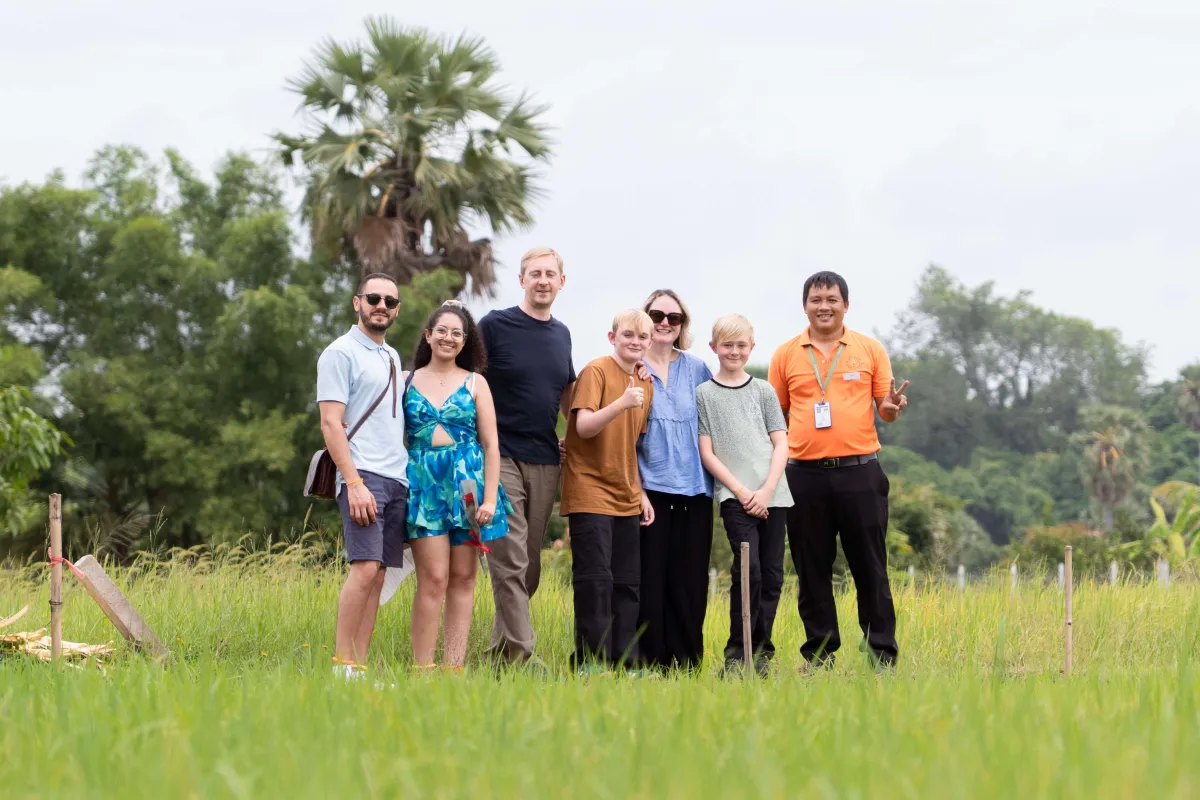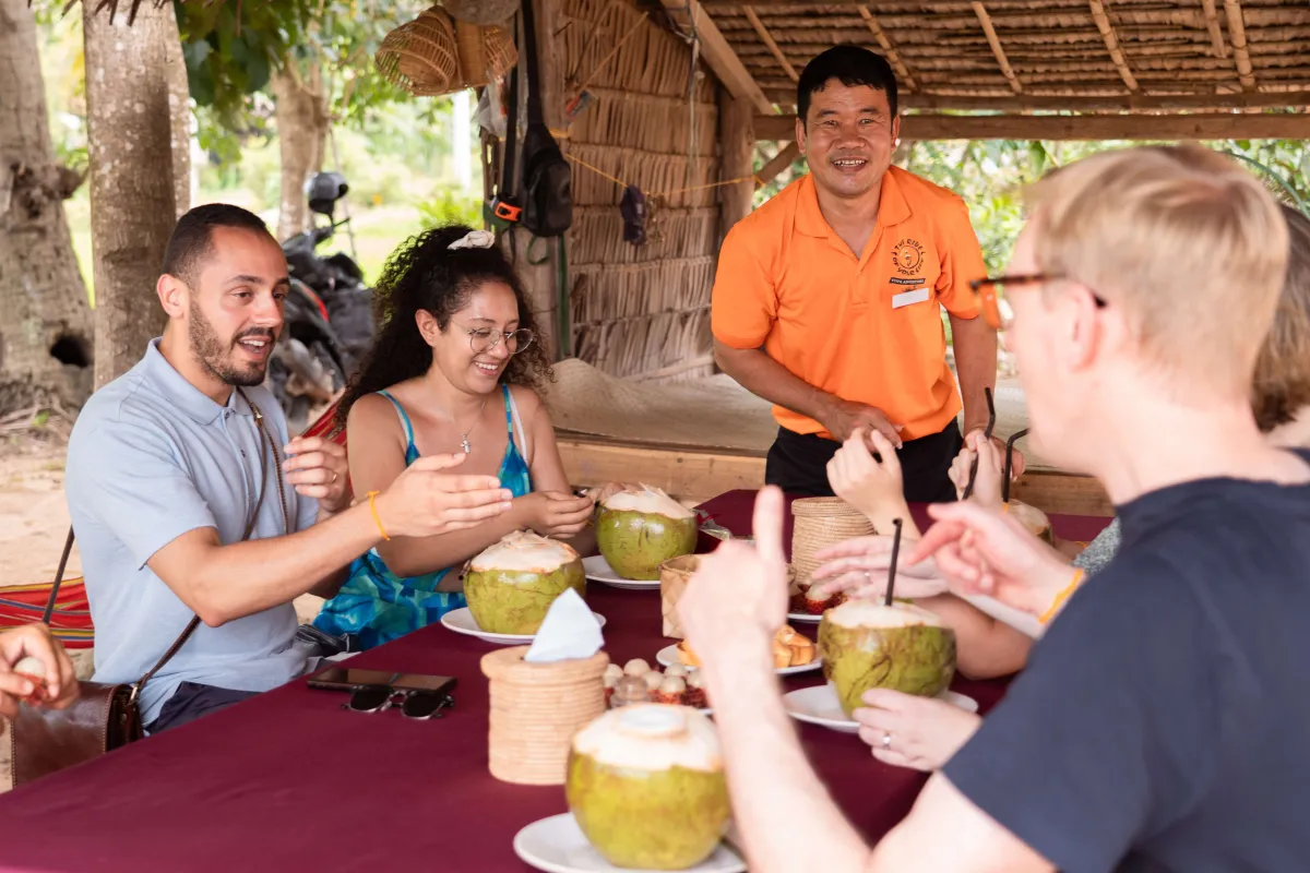 Our final stop takes us into the rice paddies, where a welcoming family invites us into their home. We share refreshing drinks and genuine conversation, learning about rural life through the warmth of Khmer hospitality.