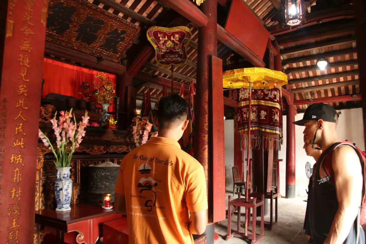 Ride through scenic backroads to Co Loa Citadel, an ancient fortress rich in legend. The journey deepens as we visit a secluded wood-carving village, observing master craftsmen sculpting intricate statues.