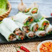 Next, we reveal an insider's twist on Hanoi's signature dish. Phở Cuốn skips the traditional soup for a cool, fresh spring roll-style wrap. It's packed with flavorful beef, fresh herbs, and served with a savory dipping sauce.