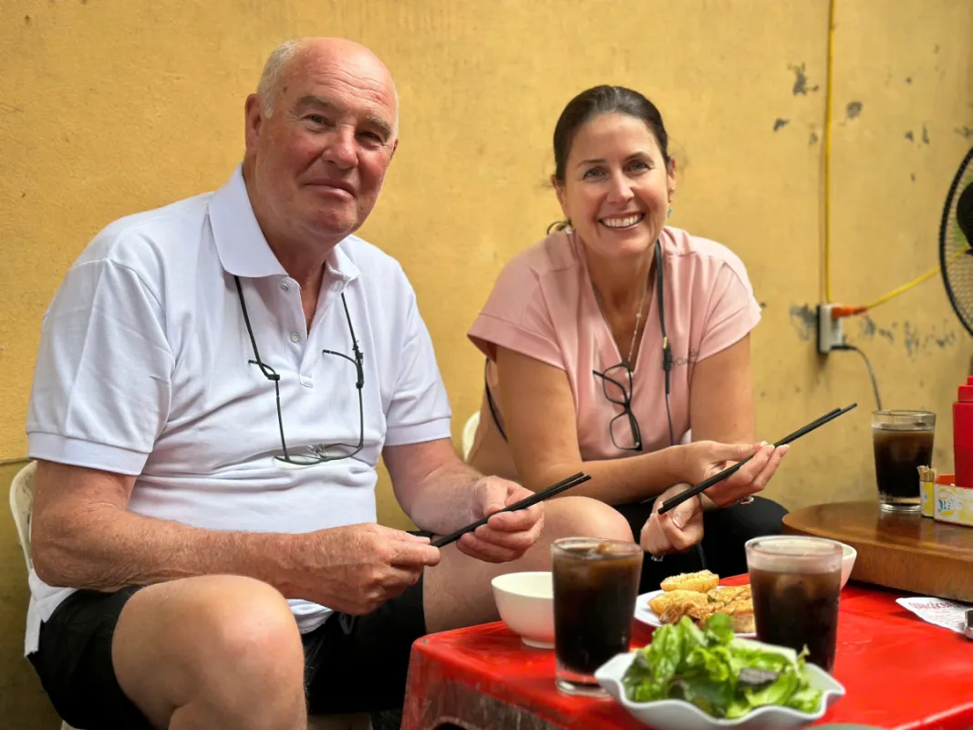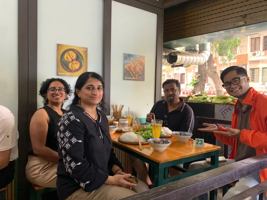 Next, we ride off-script. We take you off the beaten path and deep into the alleys to a true local hidden gem for Hanoi’s most legendary dish: Bún Chả. You’ll experience that perfect symphony of smoky grilled pork, fresh vermicelli noodles, and vibrant herbs - the same iconic dish that Anthony Bourdain and Barack Obama famously shared.