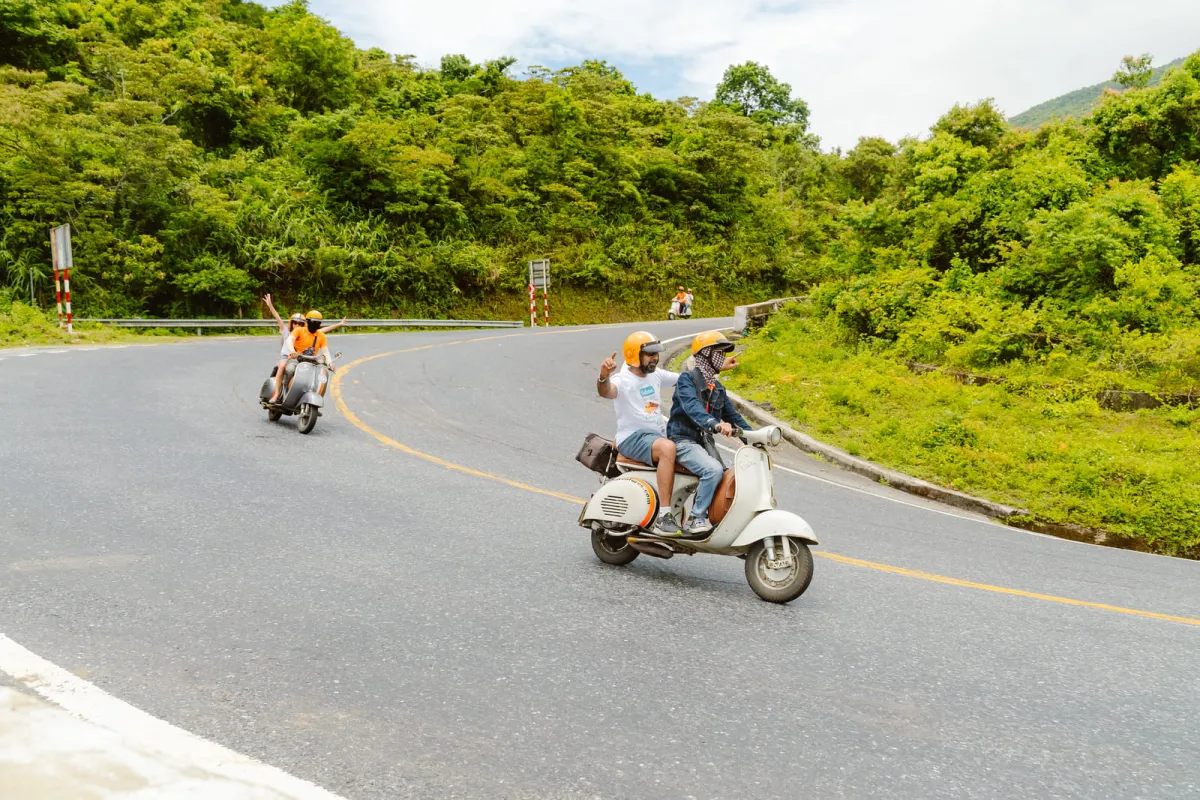 Leaving the lantern-lit streets of Hoi An behind, you’ll ride north on a classic Vespa with an experienced local driver, following coastal roads where rice fields gradually give way to sweeping ocean views. The scenery shifts constantly, setting the stage for one of the most breathtaking rides in the country.