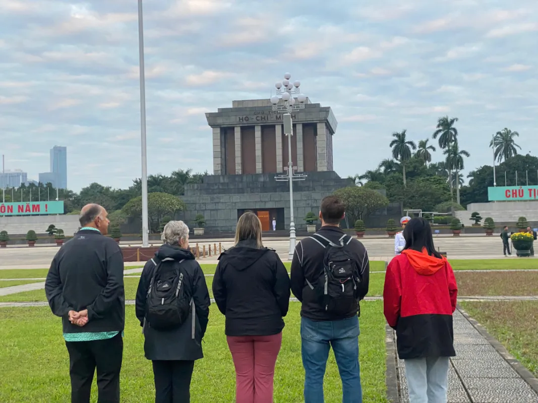 Your 'insider's' journey begins in the pre-dawn quiet. The timeless rumble of your Vespa is the only sound as you glide through Hanoi's sleeping streets to the Mausoleum. Here, you witness the solemn, iconic flag-raising ceremony. As the sun rises, we take a cinematic ride across the historic Bridge for breathtaking, panoramic views of the awakening city and Red River.