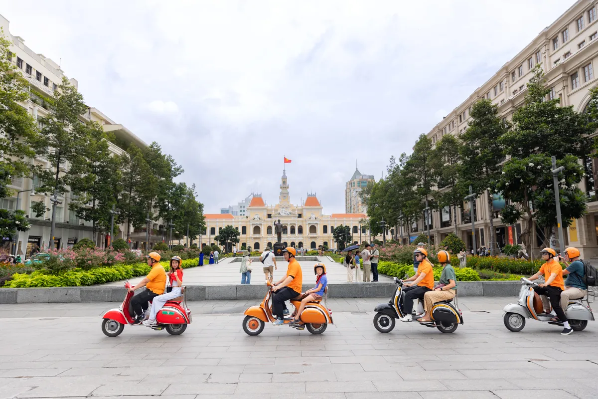 Ready to unlock a secret Saigon? Ditch the main roads and join Vespa Adventures for The Insider's Saigon, a journey that takes you straight into the city's vibrant, beating heart. We run this authentic adventure twice daily - catch the city's lively dawn or its enchanting dusk. Your The Insider's Saigon experience with Vespa Adventures can be perfectly paired with the mesmerizing À Ố Show at the historic Saigon Opera House, an exclusive journey through the city's vibrant streets and culinary soul on a vintage Vespa.